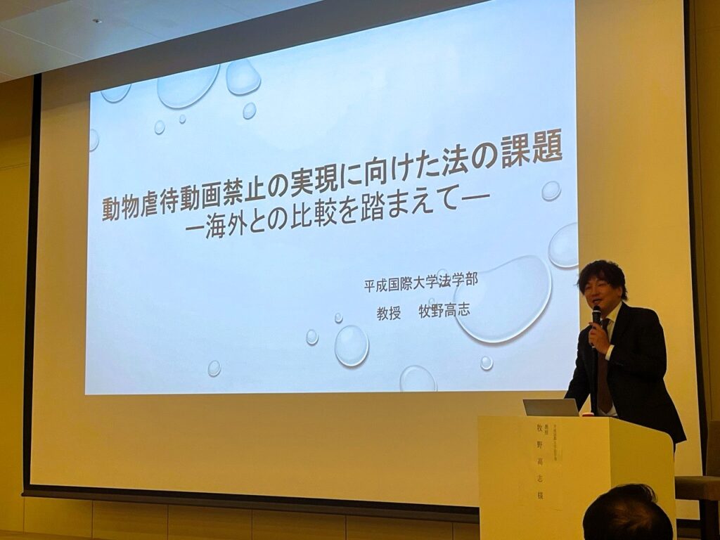 また、牧野高志教授からは、海外で既に運用されている法律が紹介され、日本においても動物虐待動画を規制する法制度の導入は可能であり、表現の自由に対する過度な制約とならないような調整や、規制対象となる動物の線引きなどについても言及がありました。